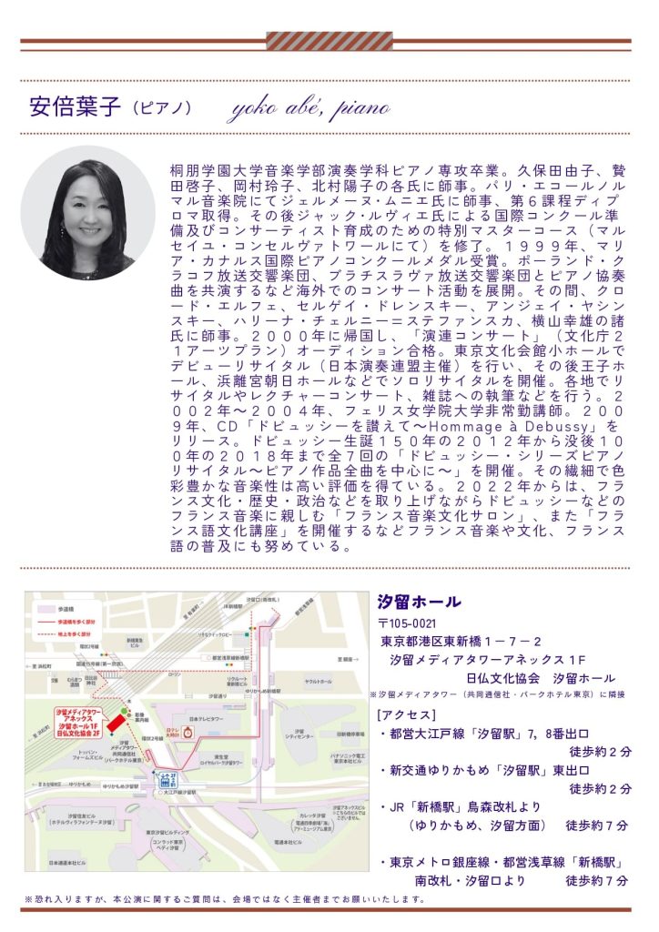 安倍葉子フランス音楽文化サロン ピアノコンサート